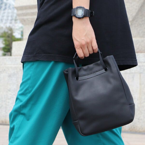 本当にいいサイズ感です。 大きすぎず、小さすぎず。 柔らかいのに自立するところ、視認性の高いところ、入れる物のサイズや量によるとは思いますが500mlのペットボトルを入れてもマグネットがしっかり閉まります。 ブラックのカラーもどんな服装にも合わせられていいです。 これから、どんどん使っていこう、使っていきたいと思える一品です。