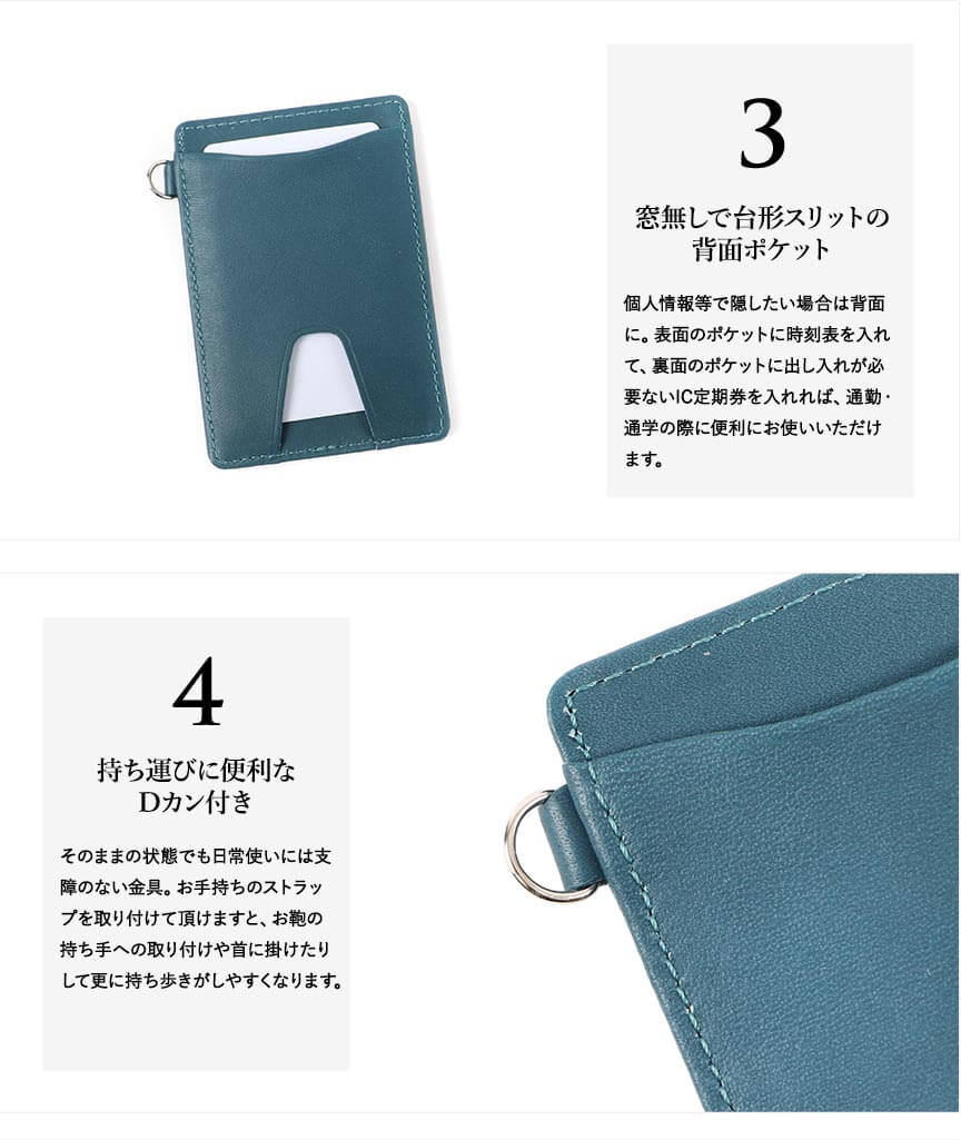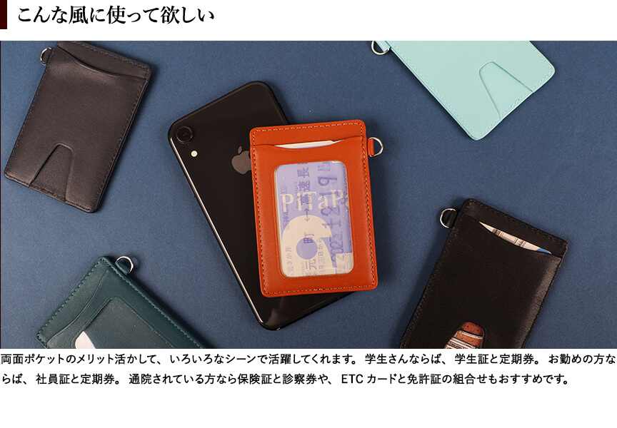 両ポケットタイプのパスケースです。別売りのリールを購入して付けることもできます。