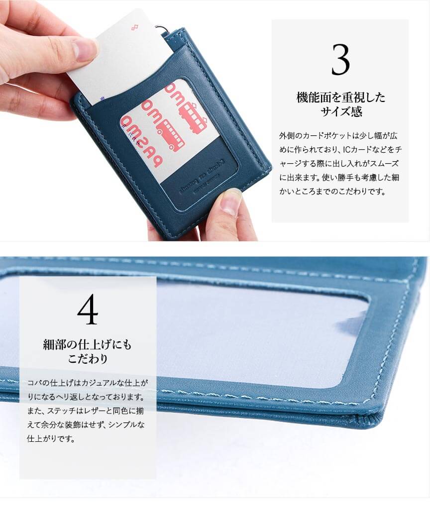 パスケース(交通系ICカード等)を使うことができ、更に学生証等を入れることのできるカードホルダーや小銭入れなど、機能的な要素が多かったので、これを選択しました。