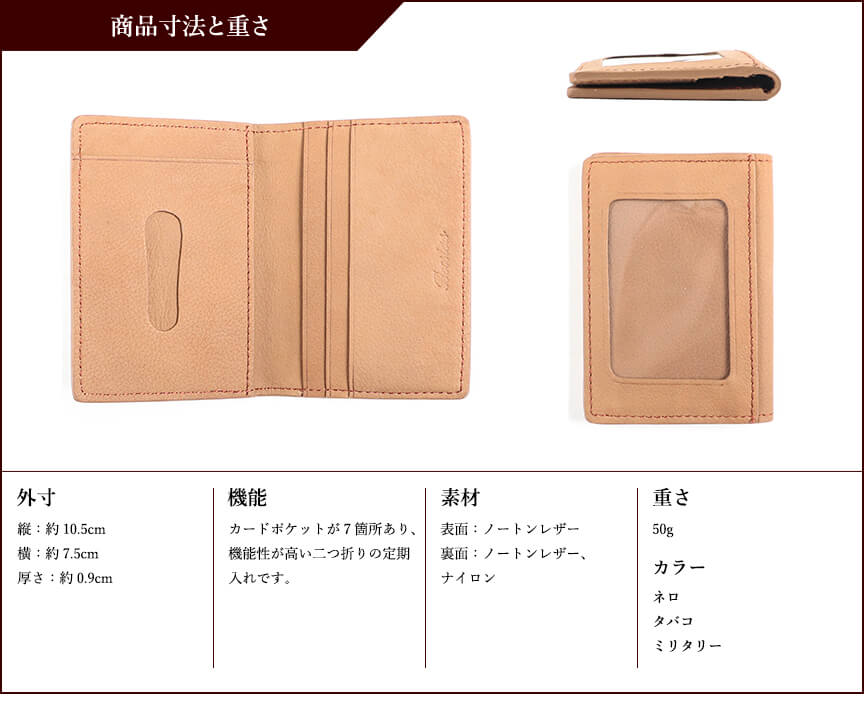 カードポケットが7箇所あり、機能性が高い二つ折りの定期入れです。