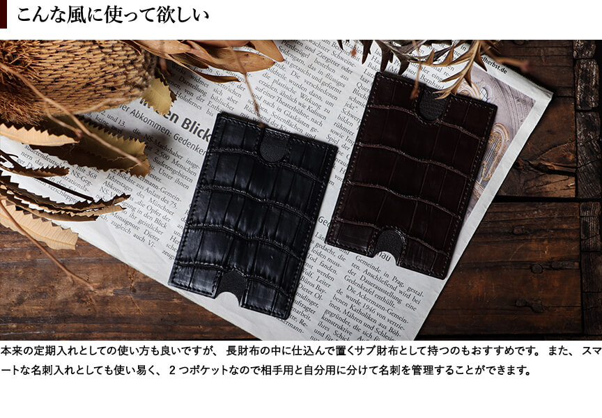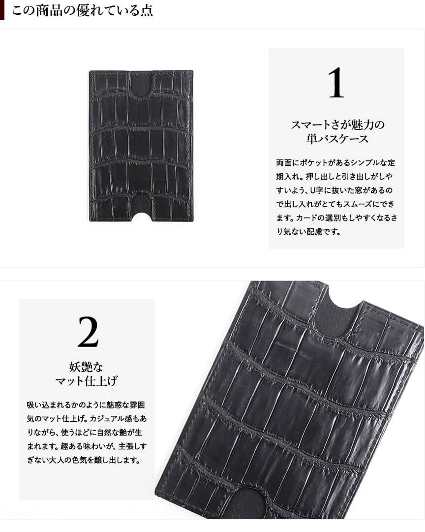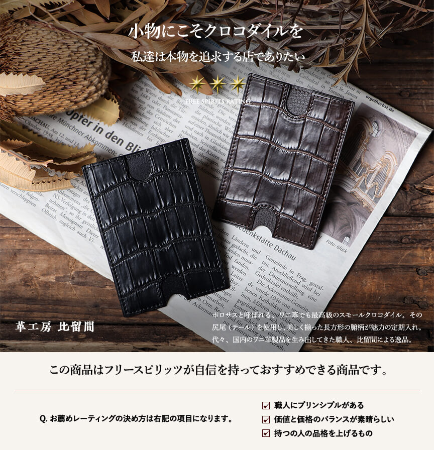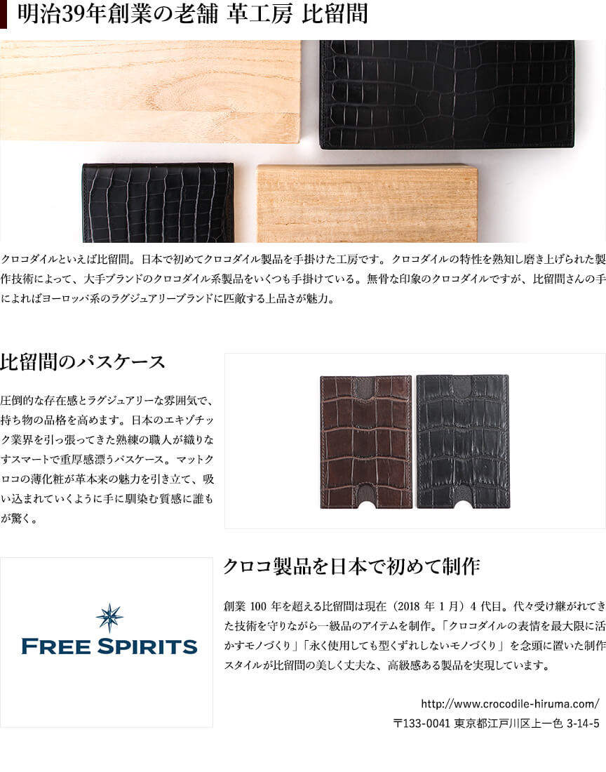 革工房 比留間 スモールクロコダイル テール パスケース 定期入れ hiruma