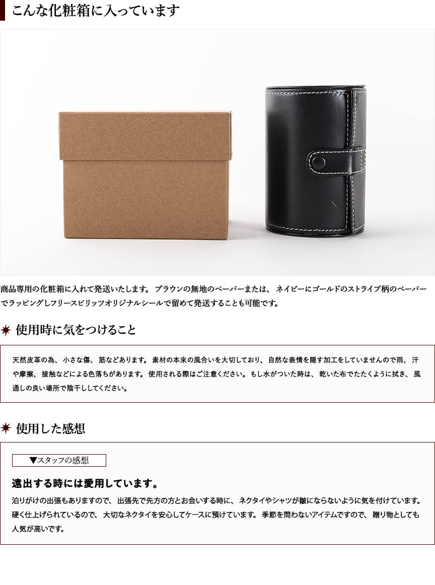 以前プレゼントしたネクタイを持ち運ぶ際にネクタイの大きな箱のまま持ち歩こうとしていたので、コンパクトなケースがあれば良いなと思っていました。