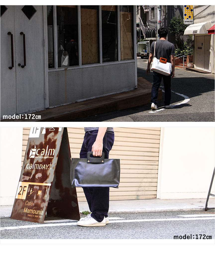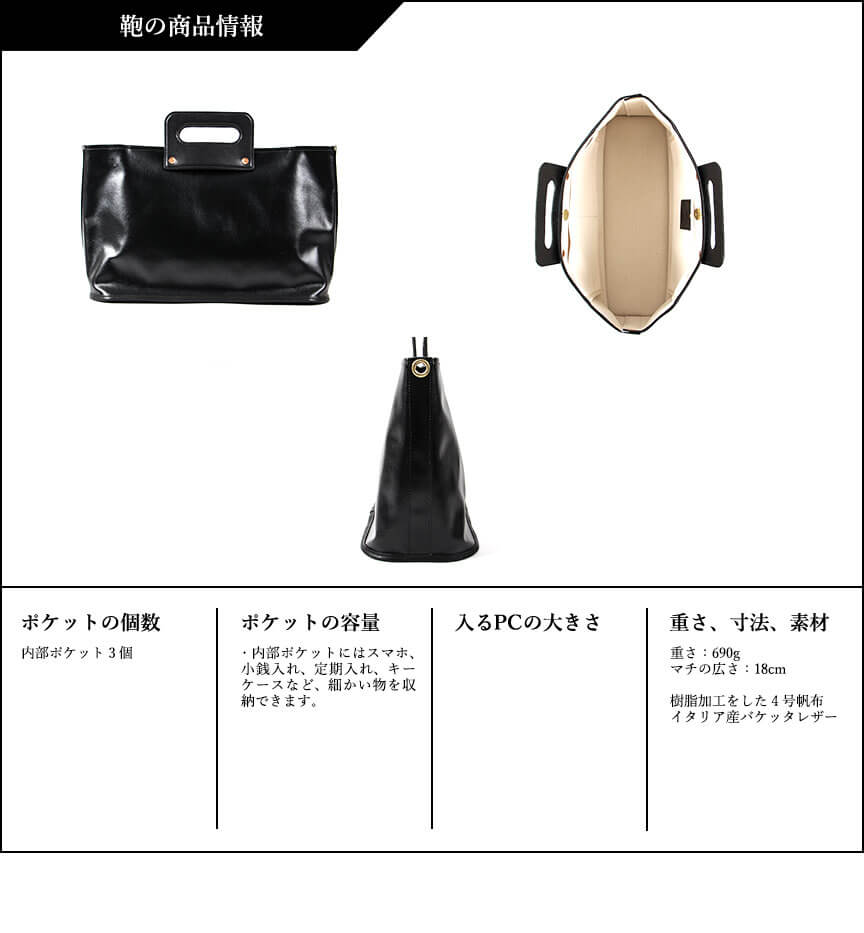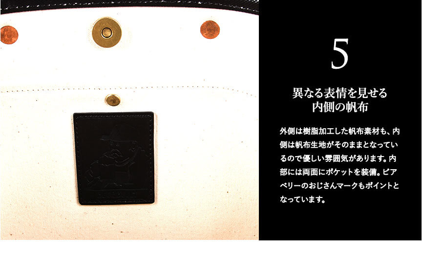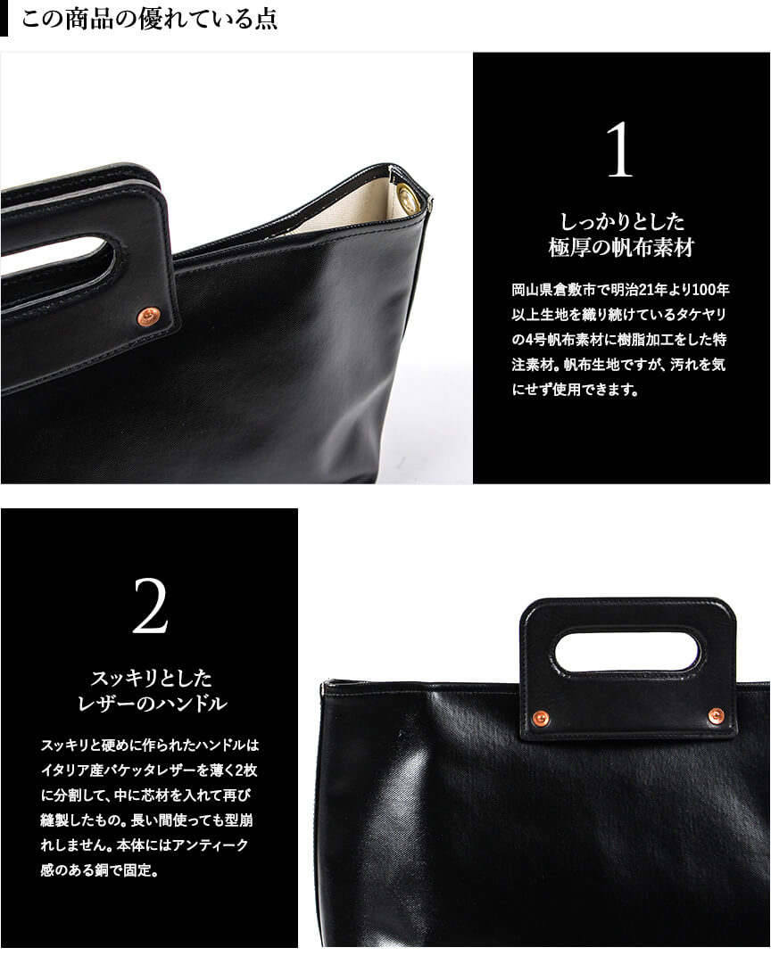岡山県倉敷市の織元。タケヤリさんの4号帆布に樹脂加工を施した特注素材。 イタリア産バケッタレザー