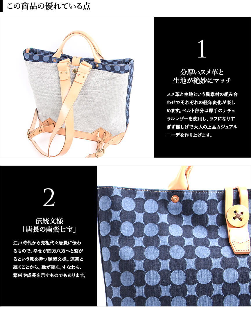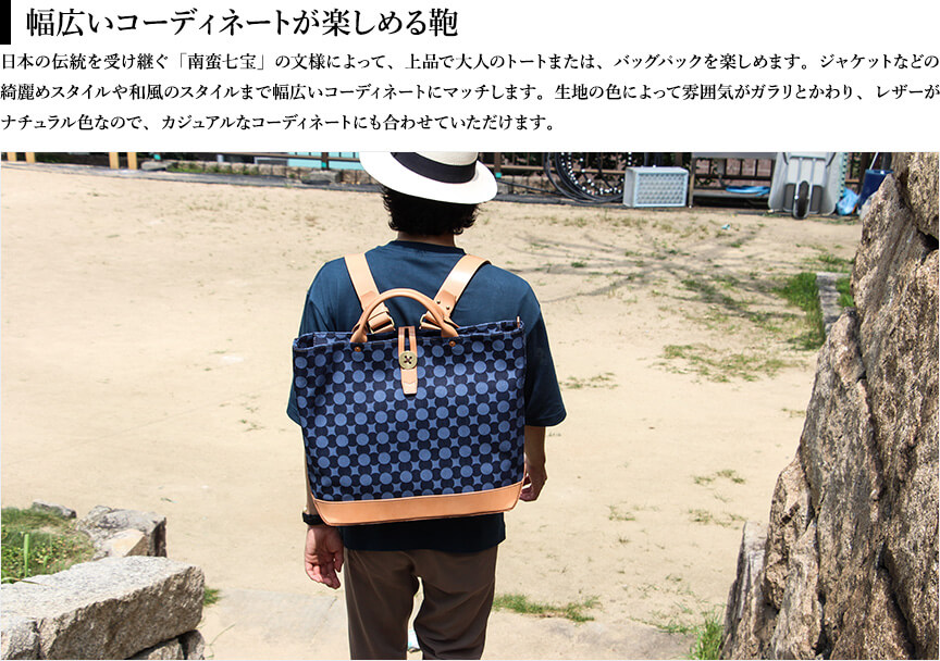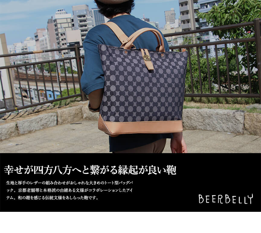 ビアベリー backTOTEpackファスナー付き 南蛮七宝 ナチュラル トートバッグ BEERBELLY