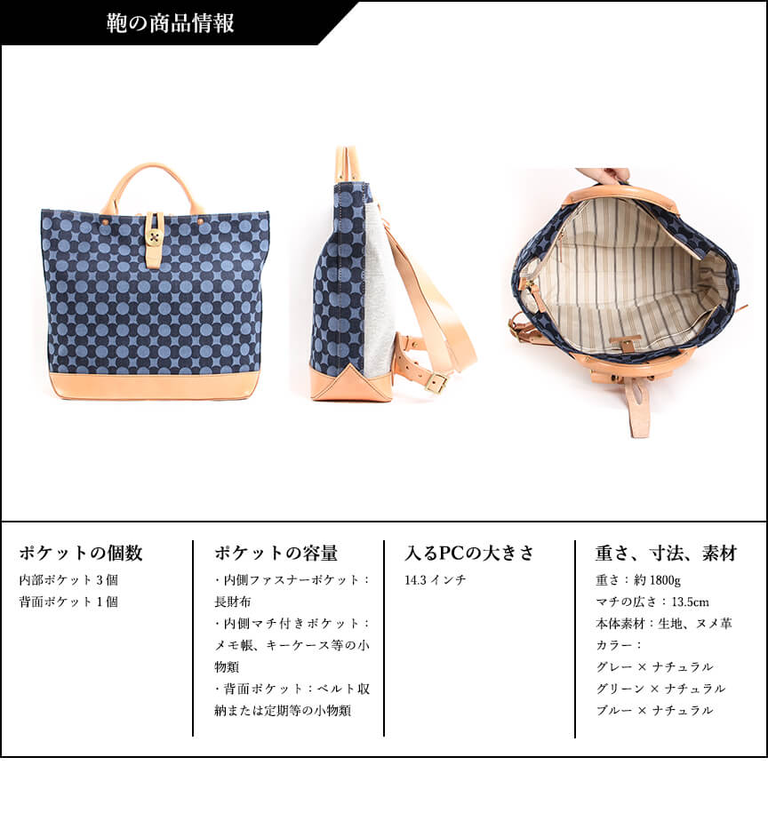 ヌメ革、帆布