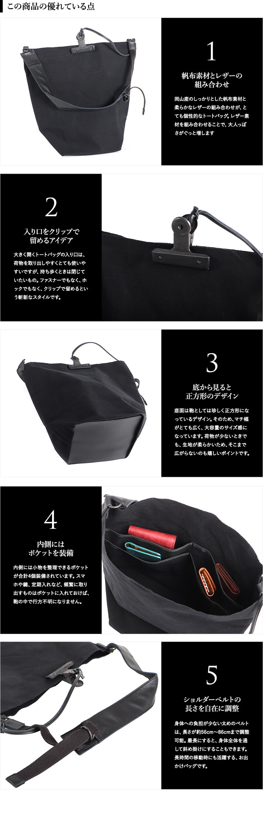 ジンモン CLIP Bucket medium ショルダーストラップ調整可能タイプ トートバッグ JINMON