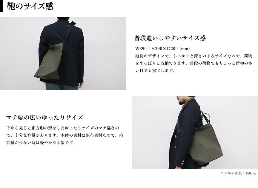 まだ使い始めですが、この硬めの帆布をクタクタに使いこなすのが今から楽しみです。ポケットの数、マチは十分でMサイズ購入しましたが、かなりの容量入ります!あと紐調整が付いたことにより身長やこれからだと冬などでコートなどの厚みに合わせた長さにも調整できるところがいいと思います。これからの帆布のクタクタを楽しみに育てます。誰とも被らないので心の中で喜びを感じられる逸品です。