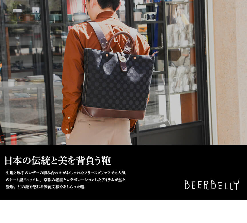 ビアベリー backTOTEpack Sサイズ ファスナー付き 南蛮七宝 トートバッグ BEERBELLY
