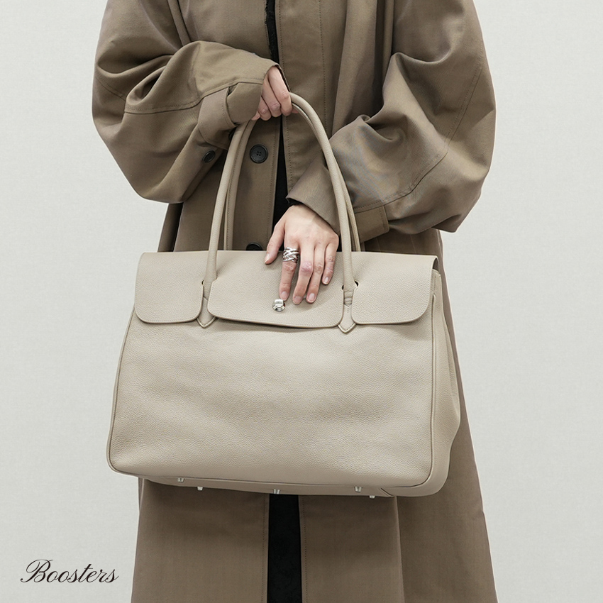 ユニセックスで使える、大容量のトートバッグ。上質なオルダラレザーを贅沢に使用したこちらの鞄は、優雅で洗練された雰囲気を演出するとともに、フロントのかぶせとドイツホックが大切な荷物をしっかり守ります。品格と実用性を兼ね備え、ビジネスからプライベートまで幅広いシーンで活躍するアイテムです。