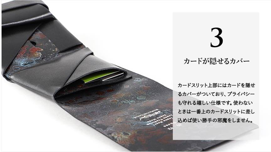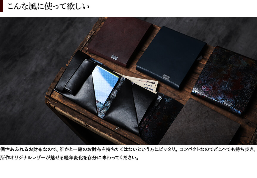 今回オーロラブラックを購入しました。 ショートウォレット2.0はコンパクトでお札も折らずに入れれてとてもよいのですが、オーロラのペイント箔が透明フィルムをしているとは伺ったもののカラーが早くも剥げたり、トコ面の毛羽立ちがちらほら見えたりと本当に透明フィルムの加工がされてるのかちょっと疑問になりました。
