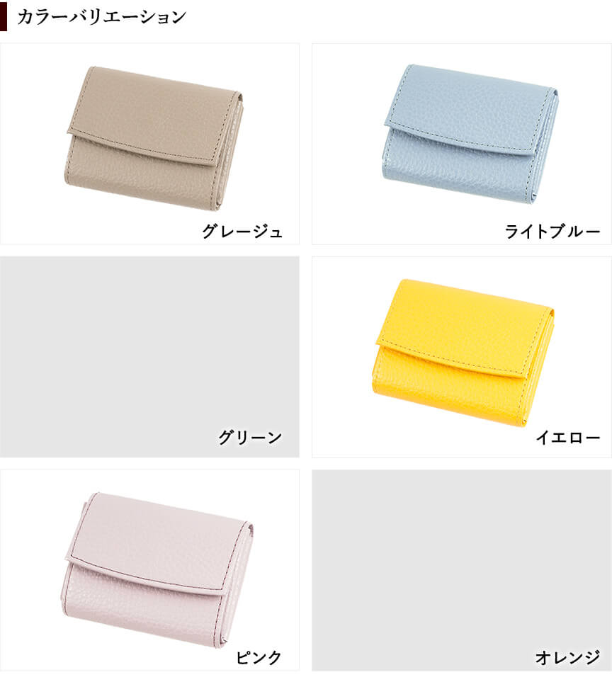 グレージュ、ライトブルー、グリーン、イエロー、ピンク、オレンジ