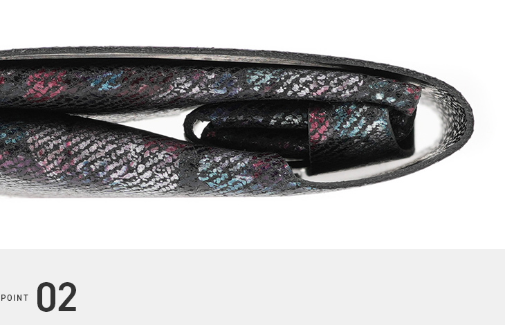 日本の伝統美を纏った「所作」を生み出すのは、熟練した日本の職人たち。世界でも稀少な製法で丹念に手間をかけた、堅牢なジャパン・レザーを、縫うことなく贅沢に一枚革で仕立てました。縫製をなくすことで革への負担も軽減し、革本来の質感を最大限に生かしています。