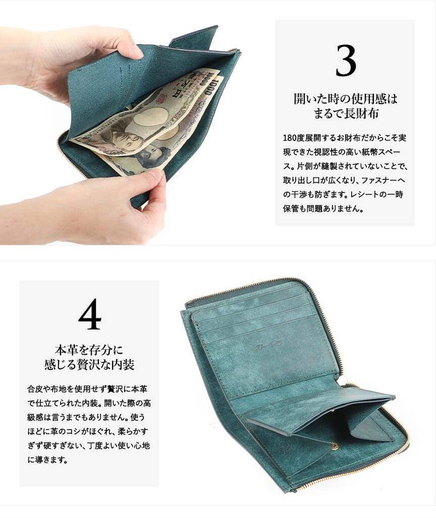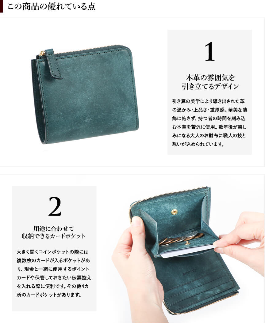 強いて言えば、小銭入れの下にあるカードポケットのフチの部分の革が一部周りと違う色に変色していた点と、ファスナーの開閉があまり滑らかではない点が気になりましたが、どちらも何ヶ月か使っていれば馴染んで気にならなくなる程度かなあと思いました。