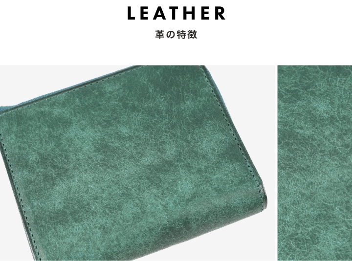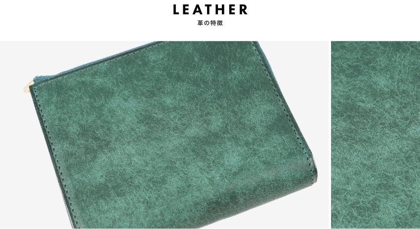 銀面(革の表面)を優しく擦り、あえて毛を逆立ててアンティーク調に仕上げたプエブロレザー。他の革よりも格段に経年変化をお楽しみいただけます。表面を擦る加工が施されているため、通常よりも手の汗や日光などを吸収しやすく、傷が目立ちにくいのも特徴です。