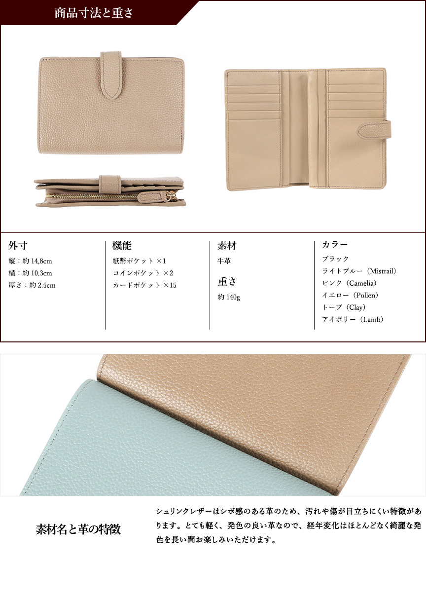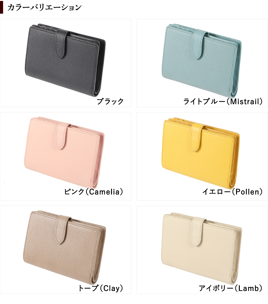 ブラック、ライトブルー(Mistrail)、ピンク(Camelia)、イエロー(Pollen)、トープ(Clay)、アイボリー(Lamb)