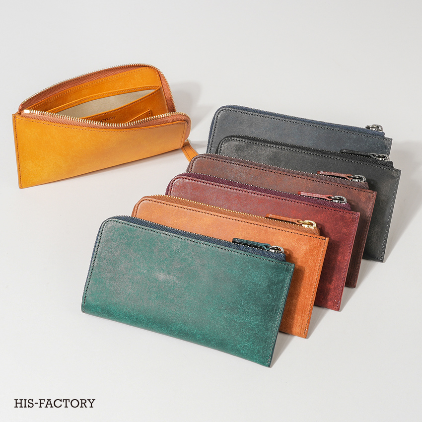 ヒズファクトリーの財布は、墨田区の工房で熟練職人が「使う人の所作」を考慮し、プエブロレザーなどの上質素材を伝統的な製法で仕立てています。交互カード段や極薄設計で、機能美と遊び心が絶妙に融合したデザインが特徴。経年変化を楽しみたい人や、スマートな使い心地を求める人に最適です。