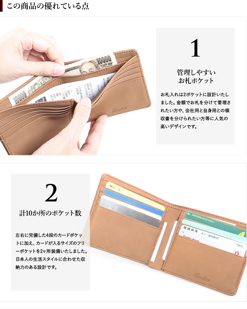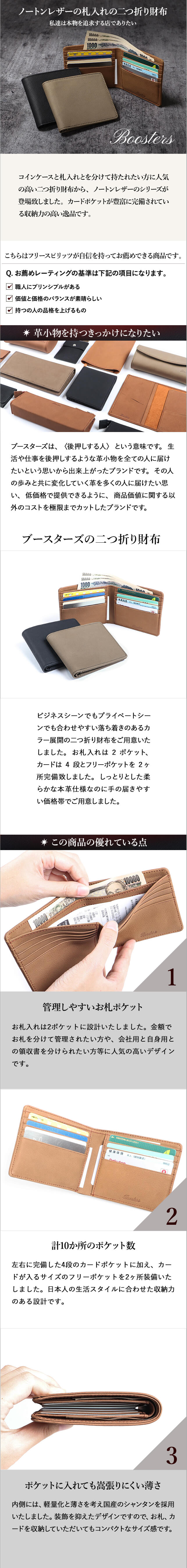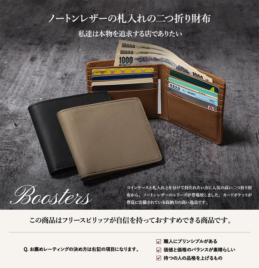【ネコポス送料無料】 ブースターズ ノートンレザー 二つ折り財布 Boosters