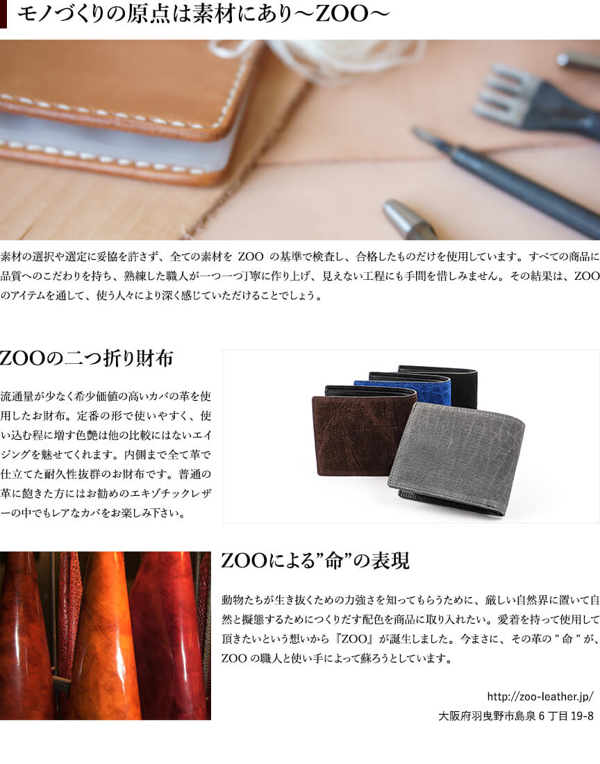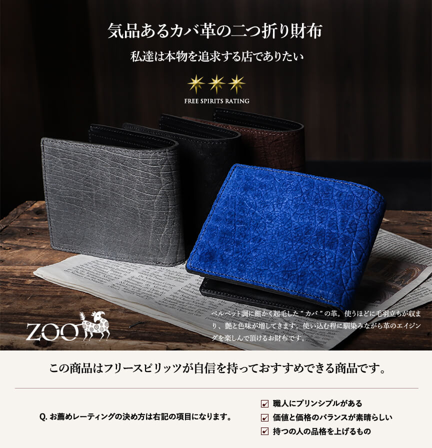 ズー バジャービル フォールド18 二つ折り財布 カバ革 ZOO ZBF-020