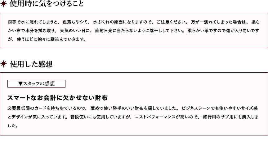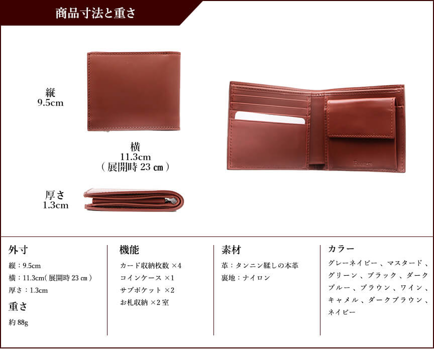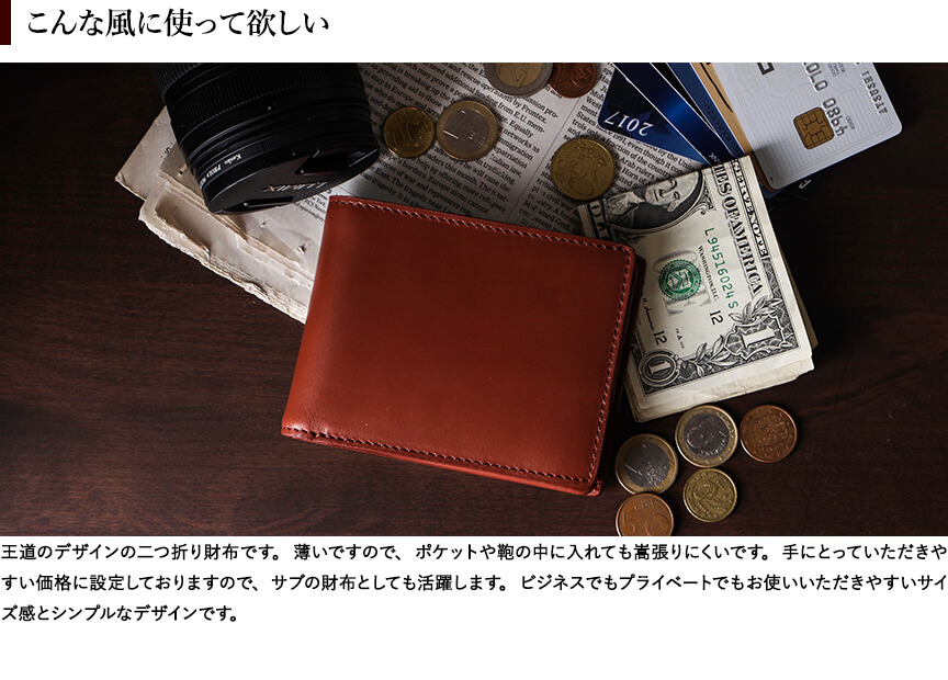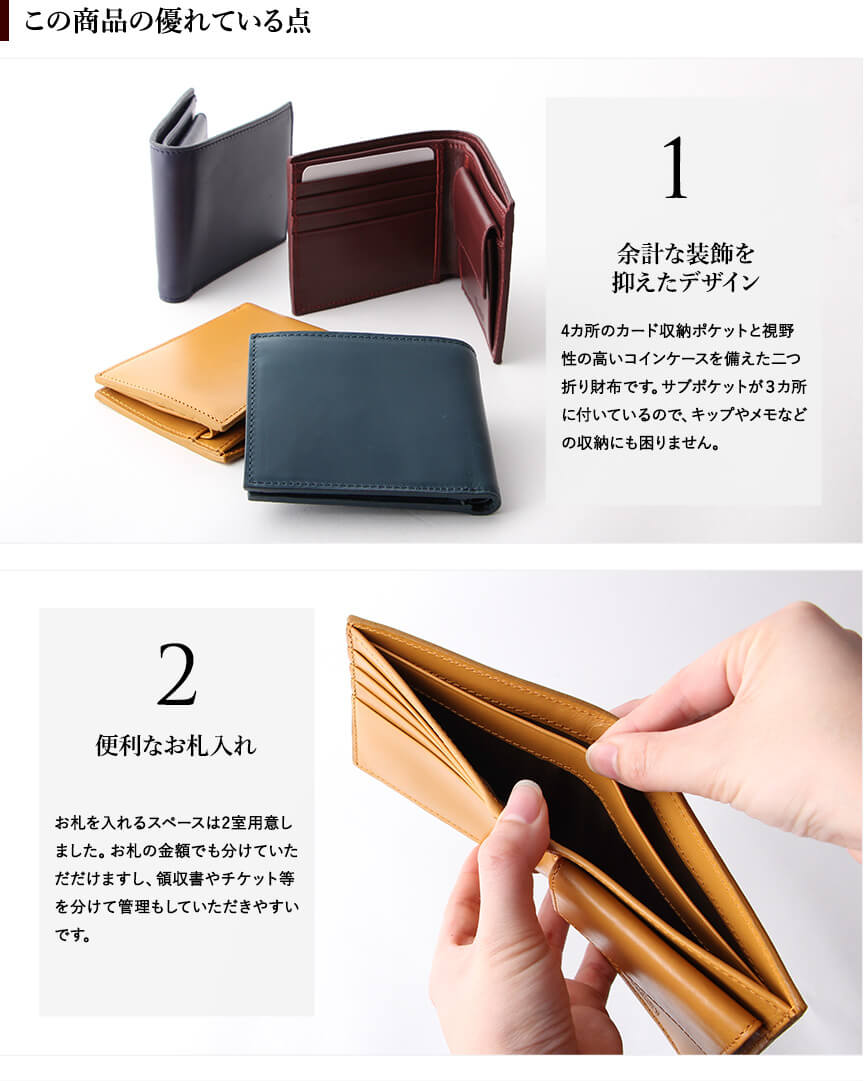 高価なものを好まない夫のために購入しました。リーズナブルで質が良く気に入ってもらえました。一点、家の鍵を財布に入れて持ち歩く夫ですが、小銭入れが小さいのか、鍵が大きいのかで入らないのが惜しかったです。