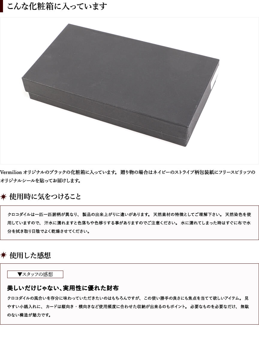 ヴァーミリオン 阿波松煙墨染クロコ 小銭入付二つ折り財布 vermilion