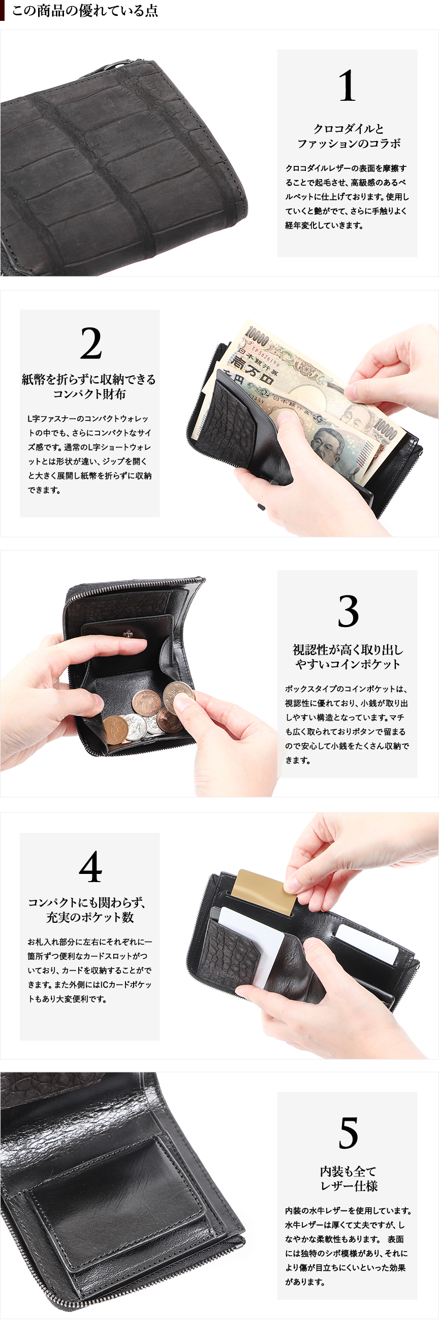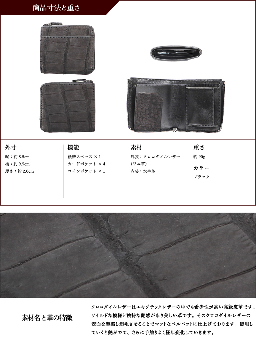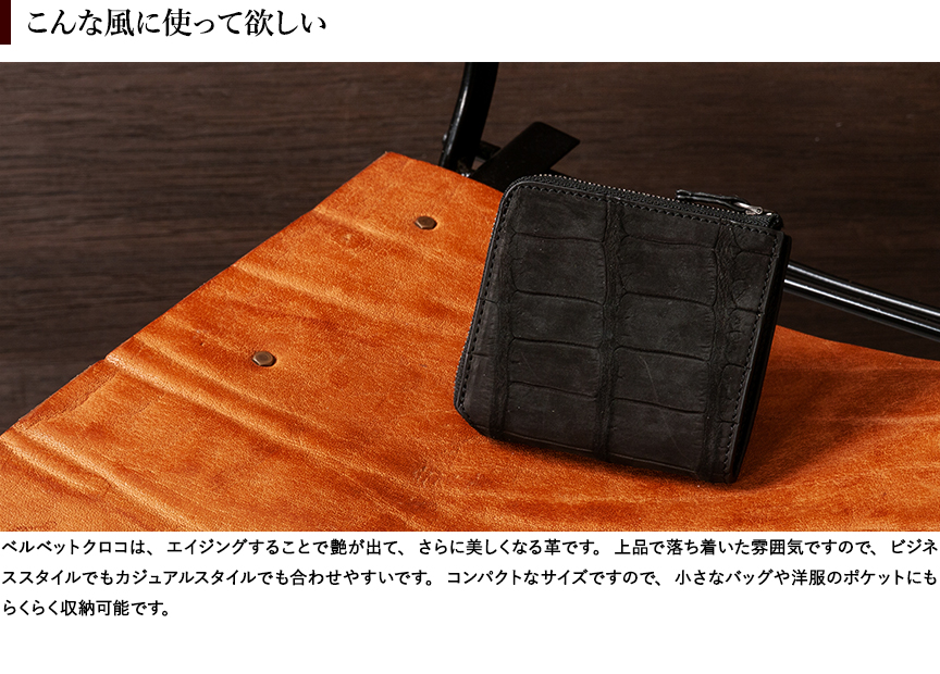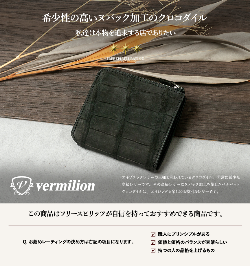ヴァーミリオン ベルベットクロコ L字ショート小銭入れ付二つ折り財布 vermilion