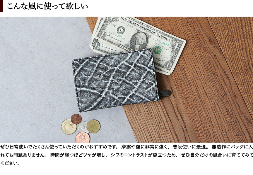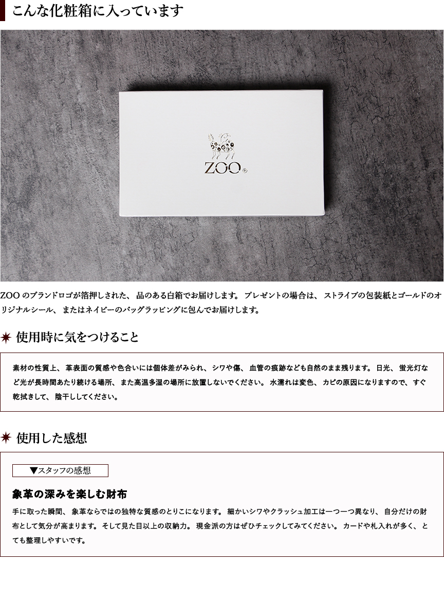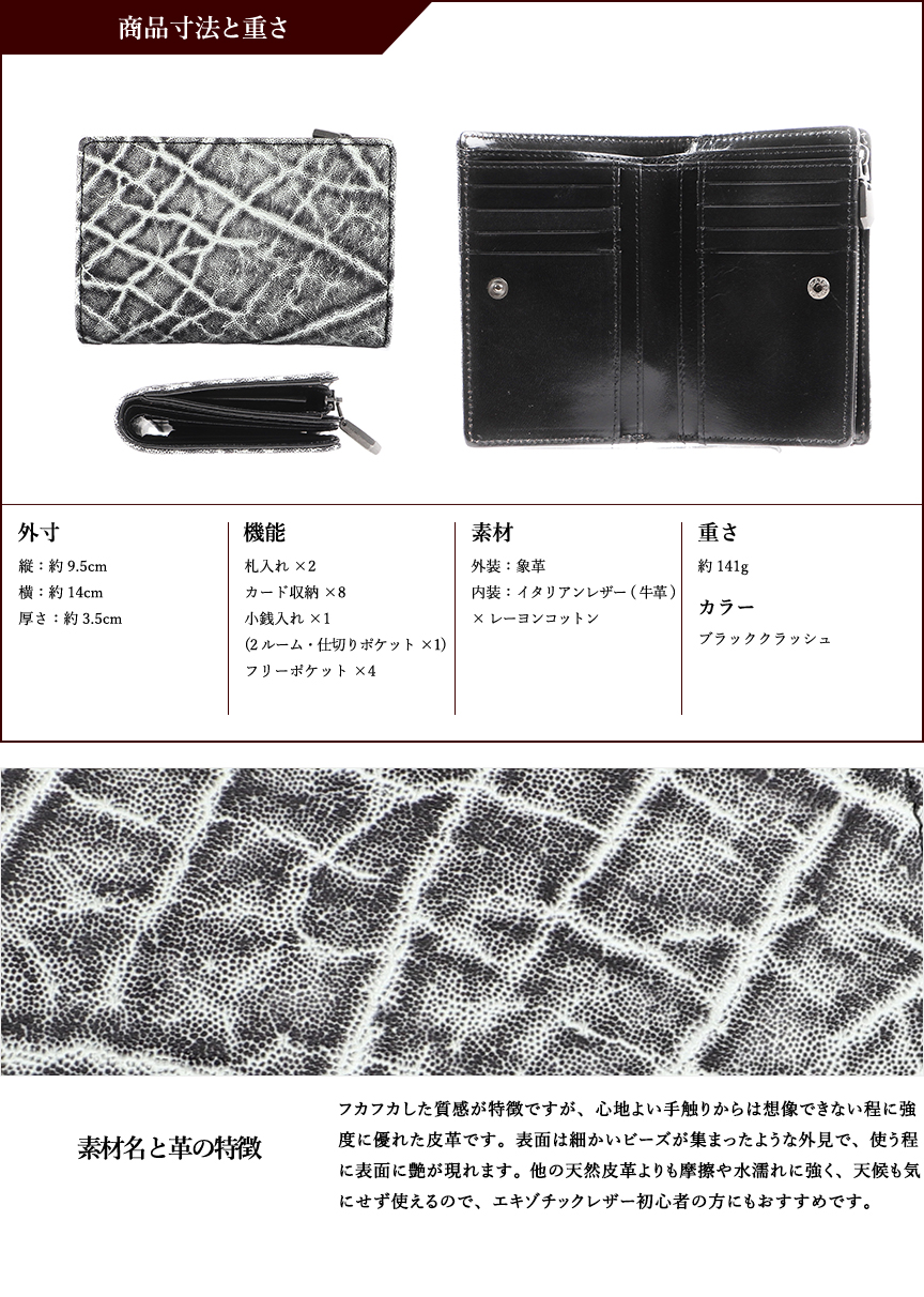 ズー 二つ折り財布 象革 ZMW-029 ブラッククラッシュ ZOO