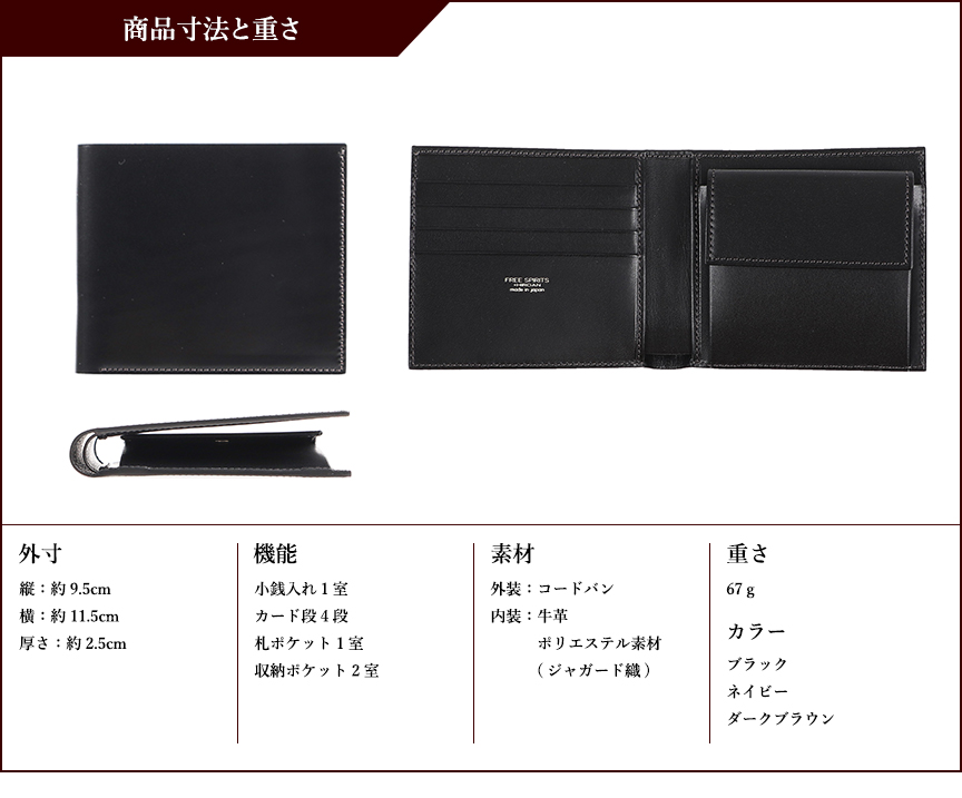 博庵 コードバン 小銭入れ付き二つ折り財布 HIROAN