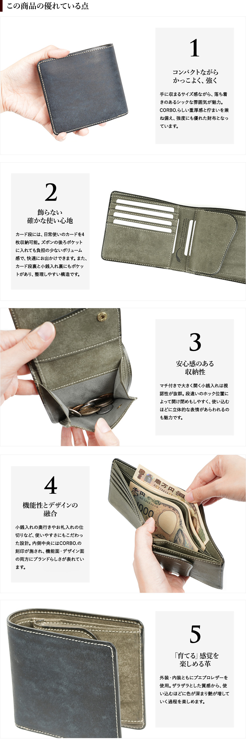 コルボ SLATE スレート プエブロ 横型二つ折り財布 小銭入れ付き 1LN-1701 CORBO