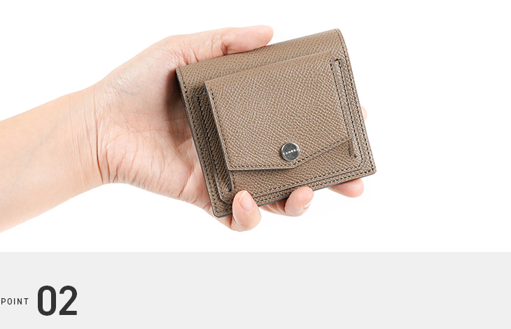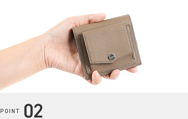 コンパクトに収まるサイズながら、お札・カード・小銭をきちんと収納できる設計です。小さめのバッグやポケットにもすっきり入り、身軽に出かけたいときにも最適。持ち運びやすさと機能性のバランスが、日常の快適さを支えます。