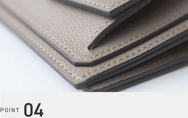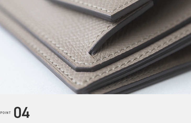 国内工房の職人が、一つひとつ丁寧に仕立てています。縫製やコバの処理といった細部までこだわり、耐久性と美しさを兼ね備えています。見えない部分まで手を抜かない職人技が、安心して使い続けられる信頼の品質を支えています。