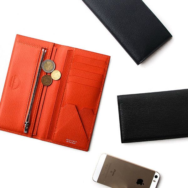 レザーはフランスの高級老舗タンナー“アルラン”社の美しい発色と細やかな型押しのゴートレザー(山羊革)。