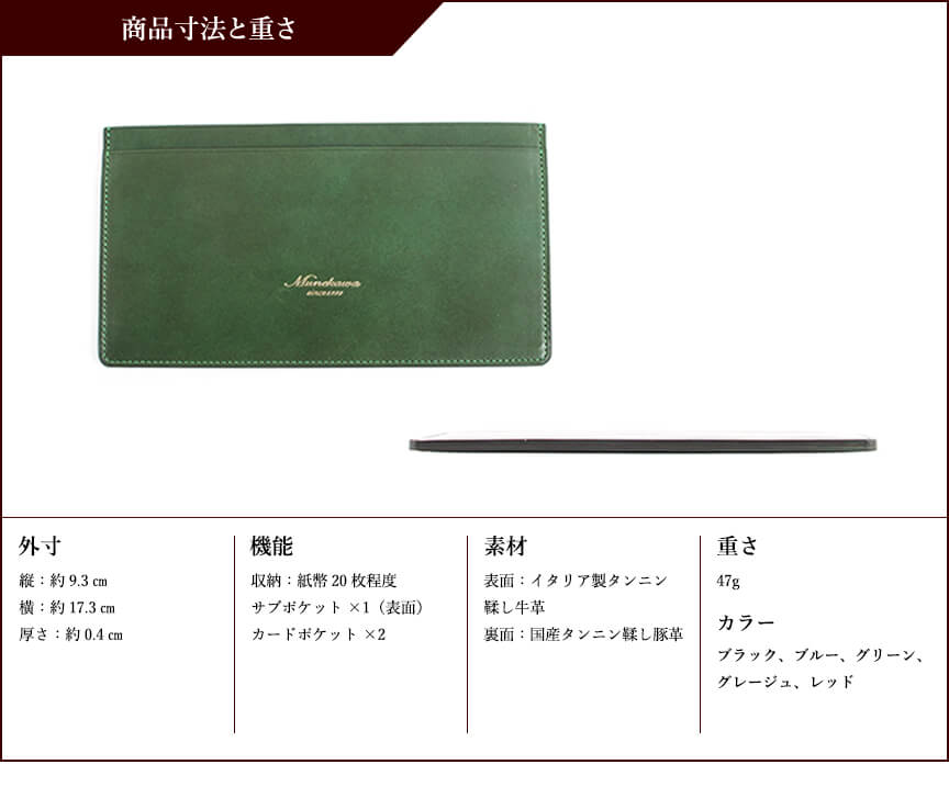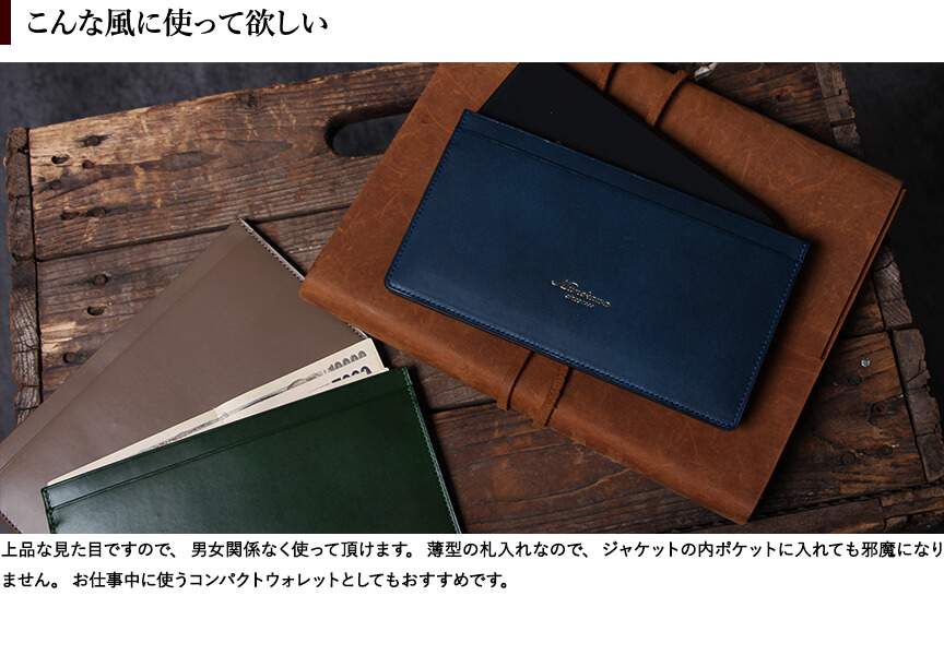 僅か3mmと紙幣サイズに極限まで近づけた薄型の長財布です。