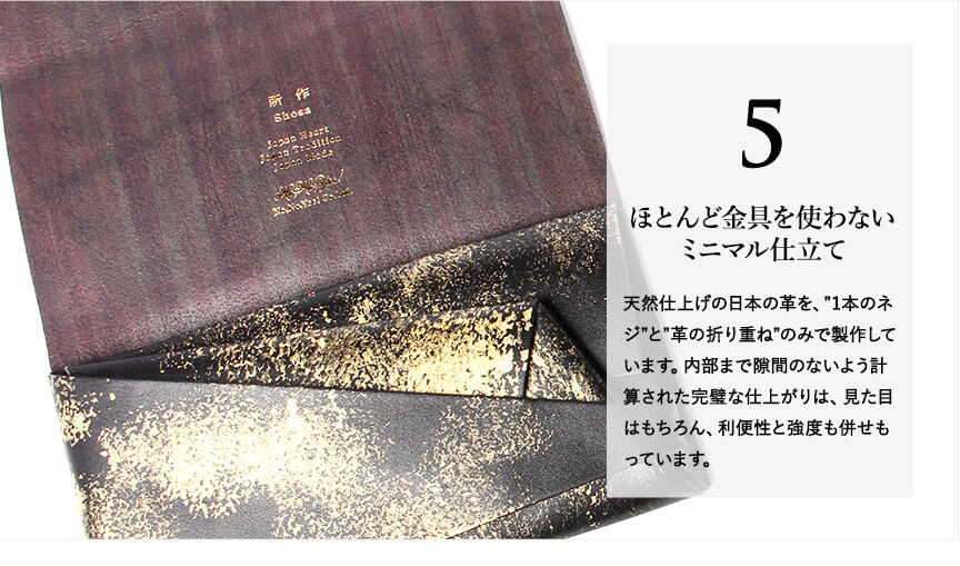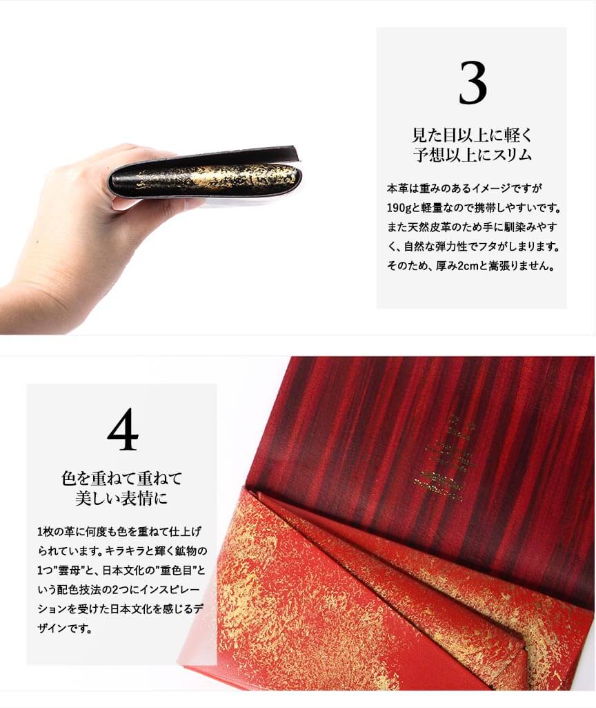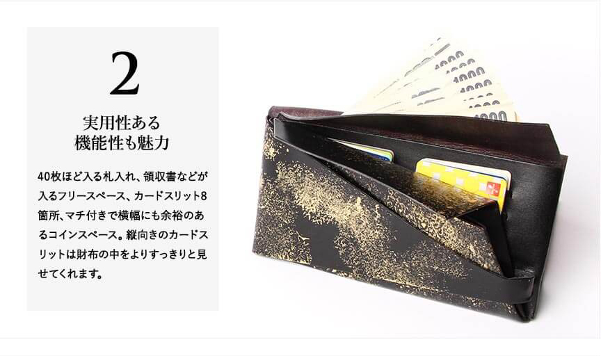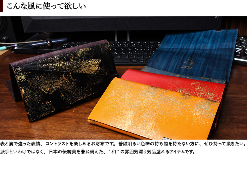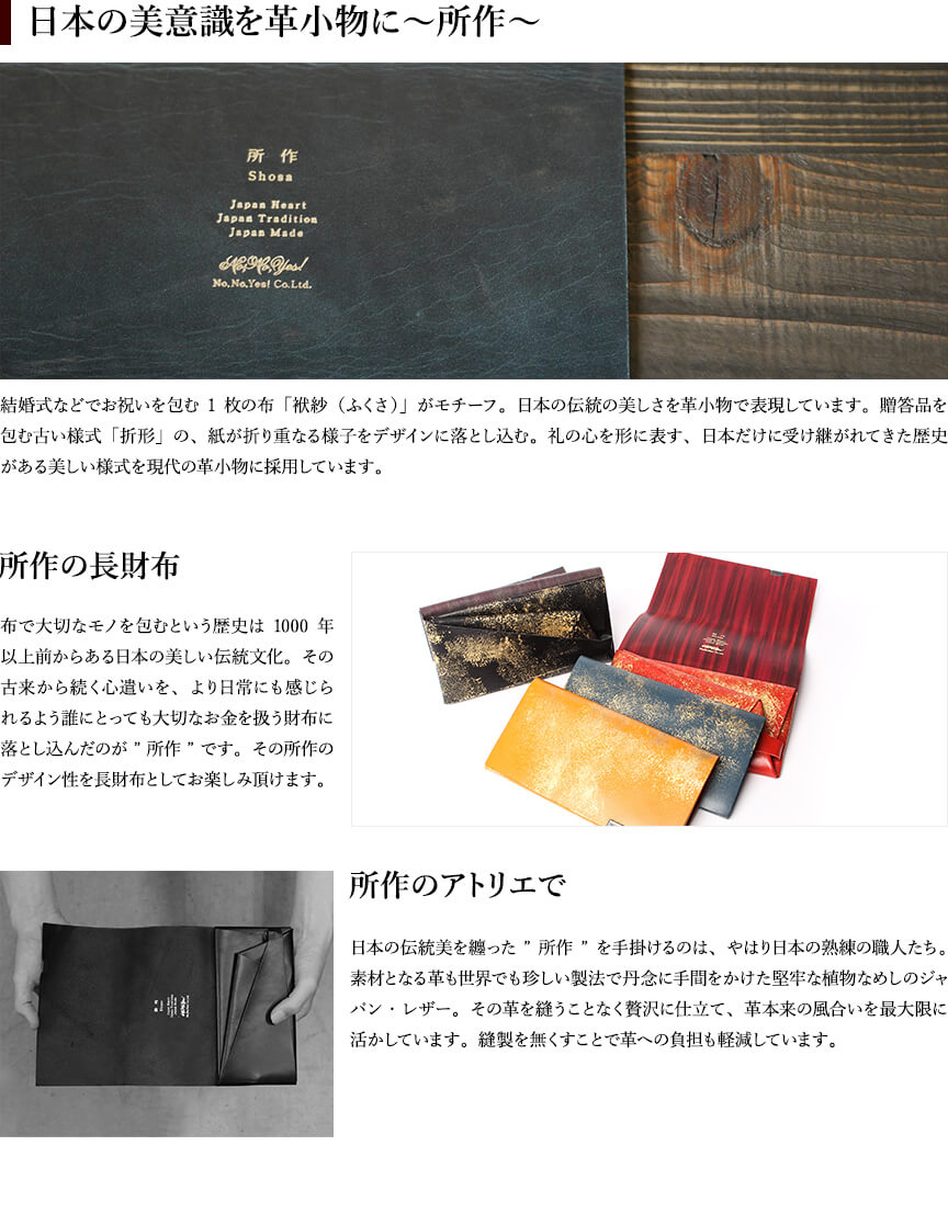 今回、所作のロングウォレット(雲母 キャメル)を購入しました。決め手はYouTubeを見たことでした。YouTubeで使っているところを見て欲しくなり購入しました。届いてから実際に手にしてみて、まず見ためのインパクトが強かったです。革が薄いですが、革にハリがありしっかりしています。使い心地も良いです。 独特な使い心地なので長く使って所作マスターになります。