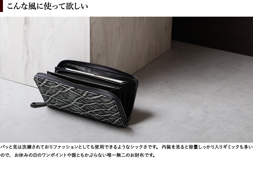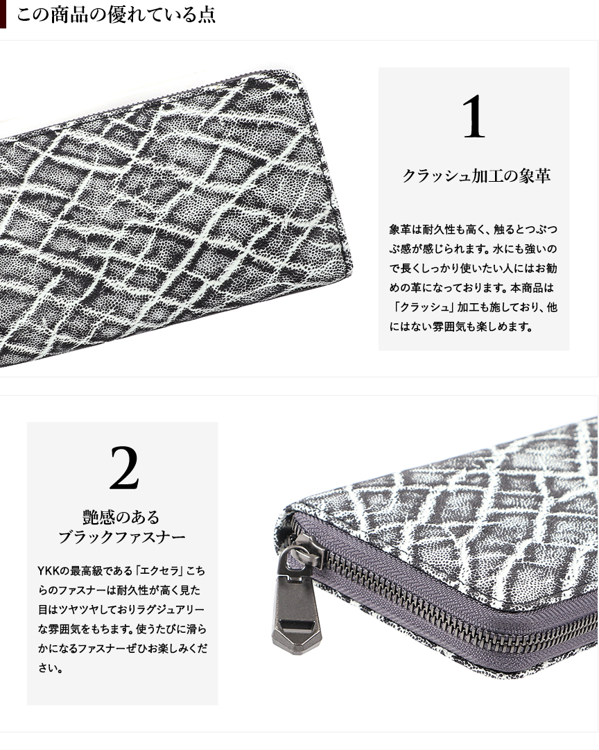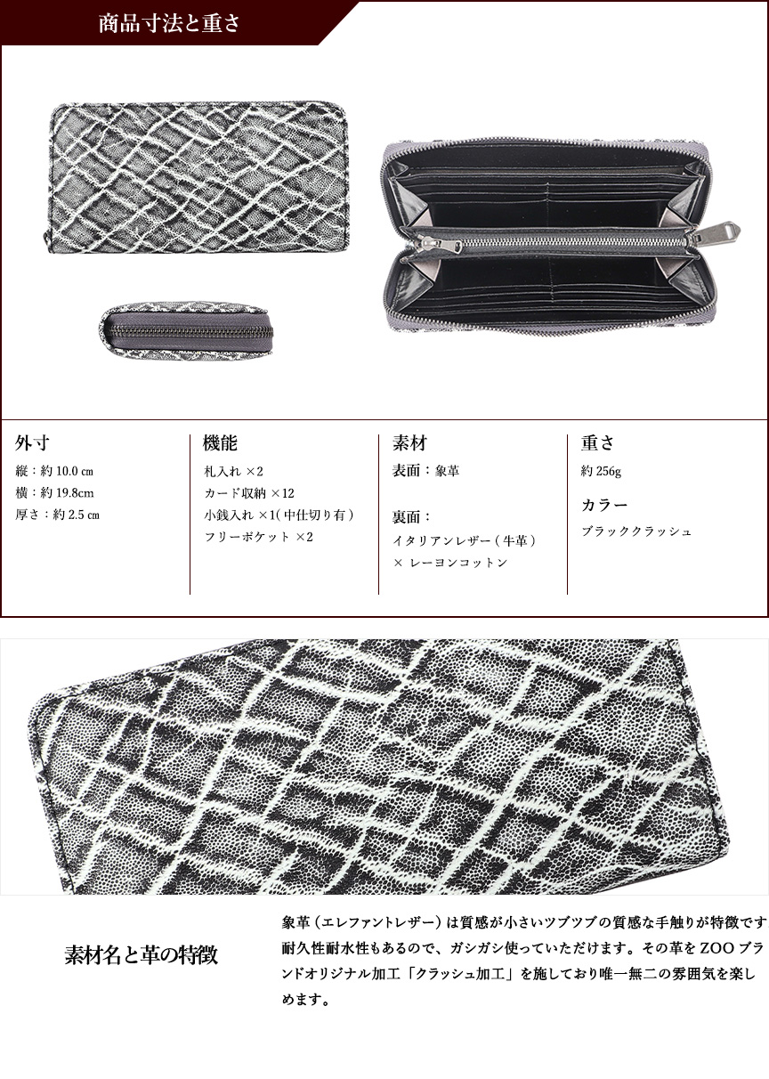 ズー 長財布 象革 ZLW-143 ブラッククラッシュ ZOO
