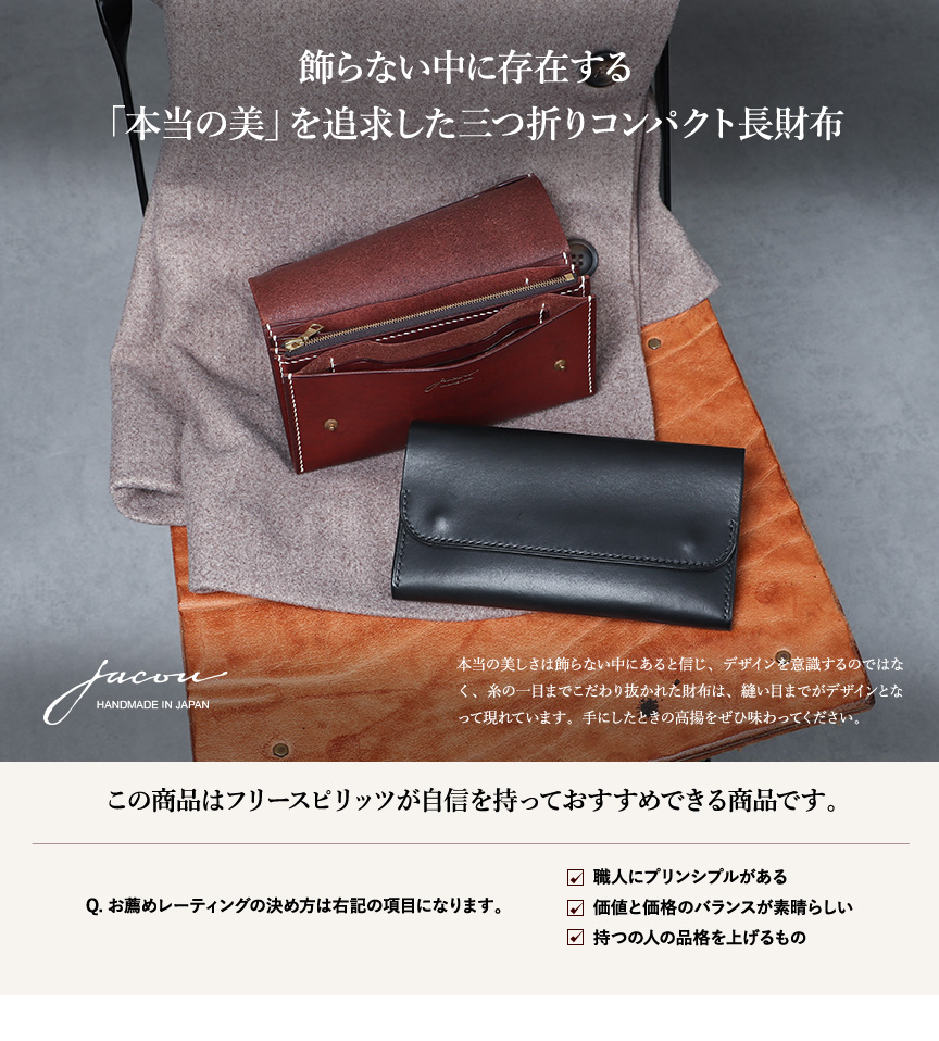 ジャコウ 三つ折りコンパクト長財布 jacou