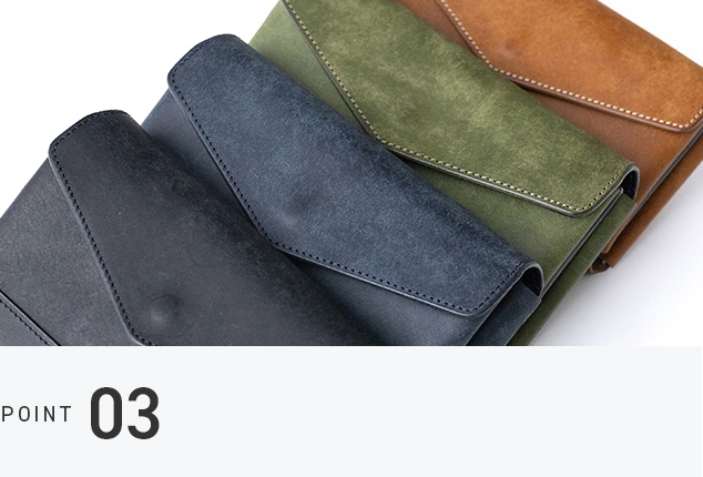 イタリアの名門「バダラッシ・カルロ社」が手掛けるプエブロレザーは、ミニマルなデザインにぴったり。使い込むほどに毛羽立ちが落ち着き、艶と深みが増していきます。個々に異なる表情を楽しめる革です。