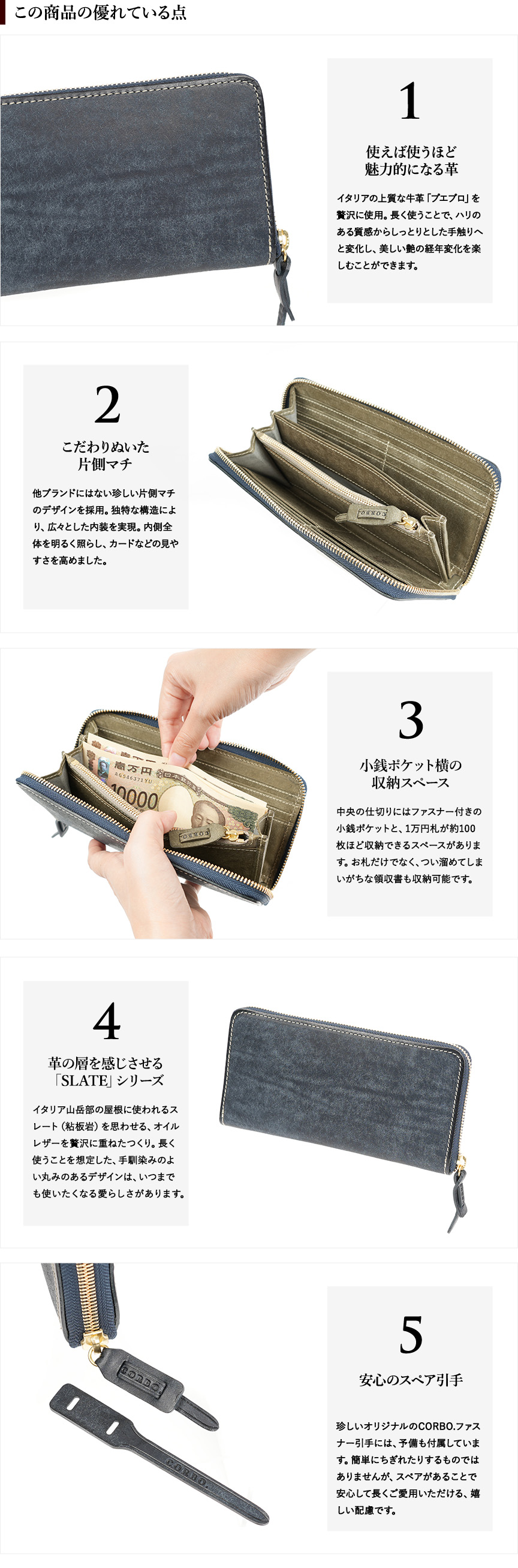 コルボ SLATE スレート プエブロ ラウンドファスナー式束入れ 長財布 1LN-1711 CORBO