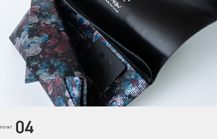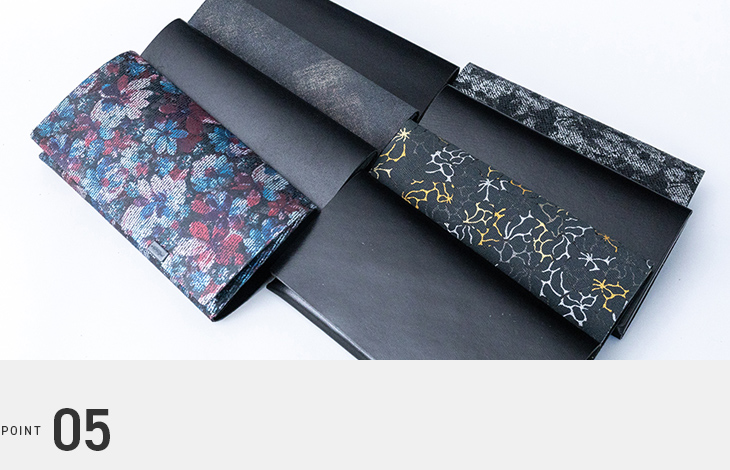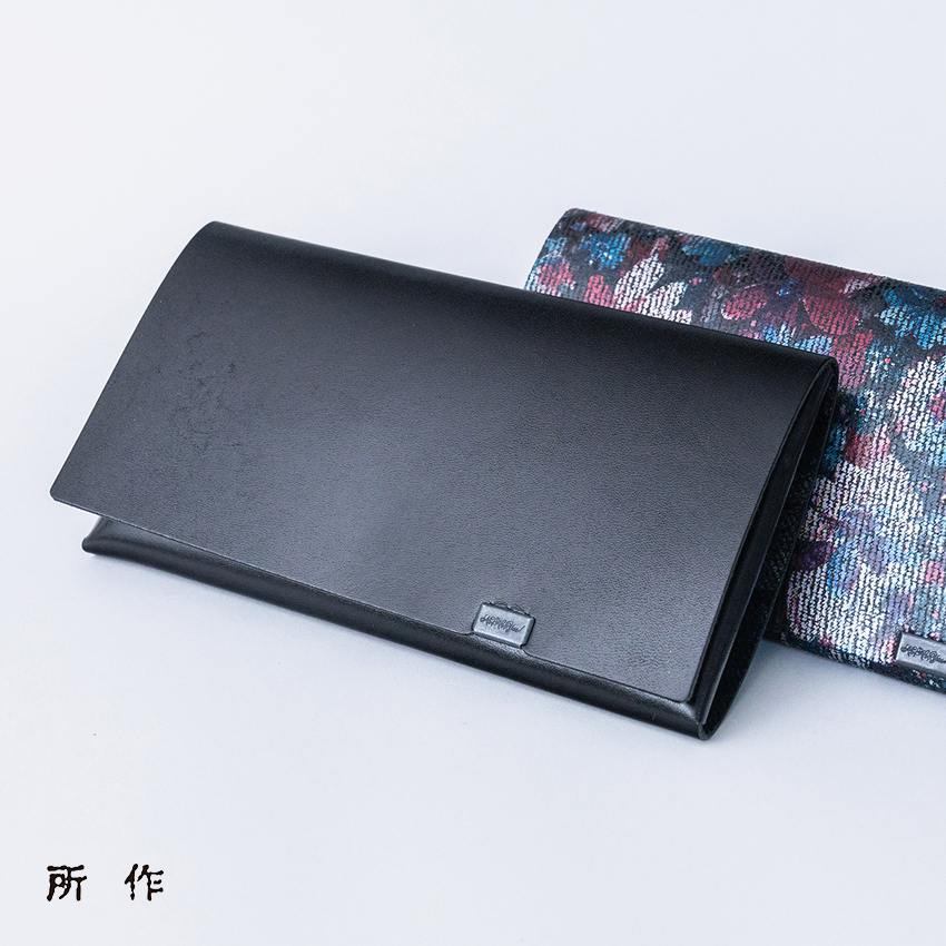 袱紗をモチーフに取り入れ、紙幣を包み込むような独創的な設計が特徴の長財布です。印象的なデザインは飽きることなく、長くご愛用いただけます。他にはない個性的な財布をお探しの方にふさわしい逸品です。