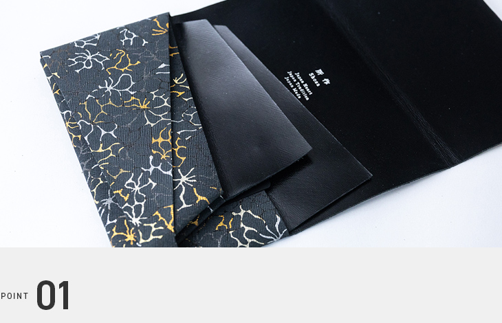 結婚式などでお祝いを包む一枚の布「袱紗(ふくさ)」をモチーフに、日本の伝統の美しさを革小物で表現しています。贈答品を包む古い様式「折形」の、革が折り重なる様子をデザインに取り入れています。礼の心を形に表す、日本だけに受け継がれてきた歴史がある美しい様式を現代の革小物に採用しています。