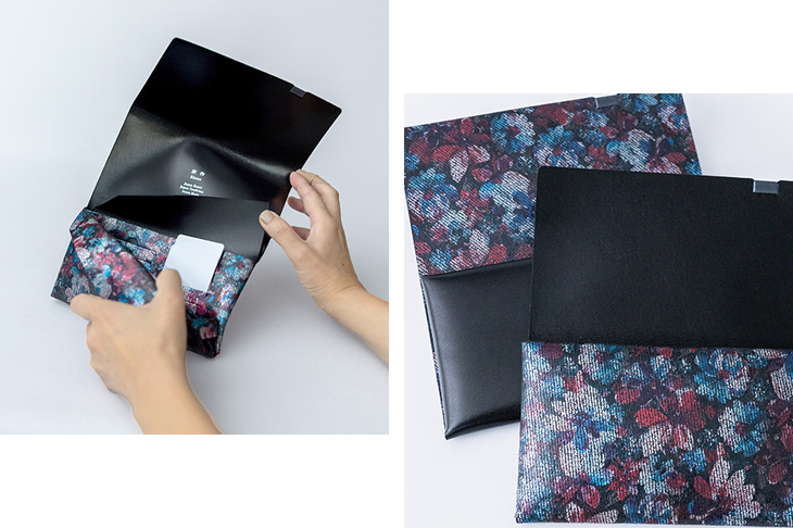 袱紗をモチーフに取り入れ、紙幣を包み込むような独創的な設計が特徴の長財布です。