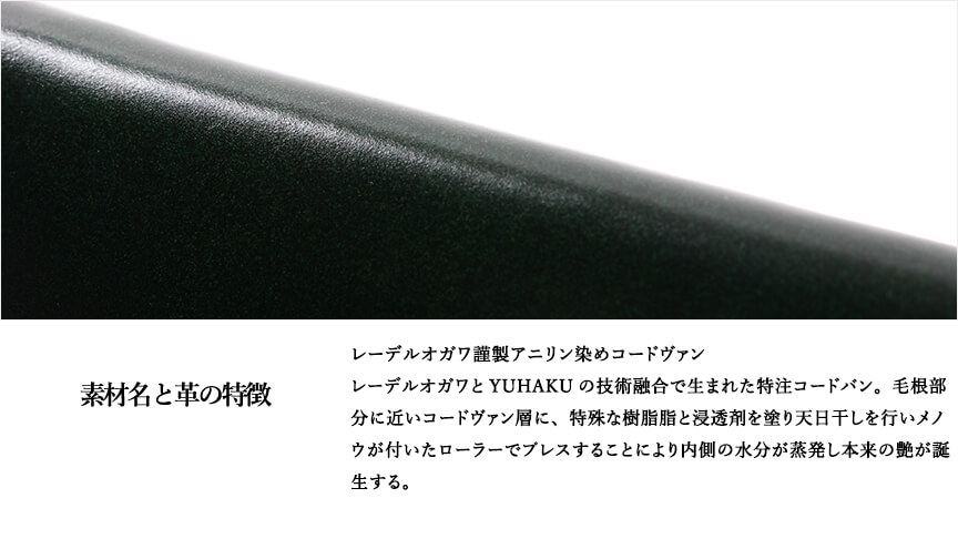 YUHAKU Diamant Seriesのラウンドファスナー束入れ(YFC114)です。緻密にして堅牢。艶やかな光沢。使い込むほどにしなやかになじむ、滑らかな質感。最高品質と称されるレーデルオガワの水染めコードヴァンに、熟練の職人が一点一点、丹念に手染めを施しました。