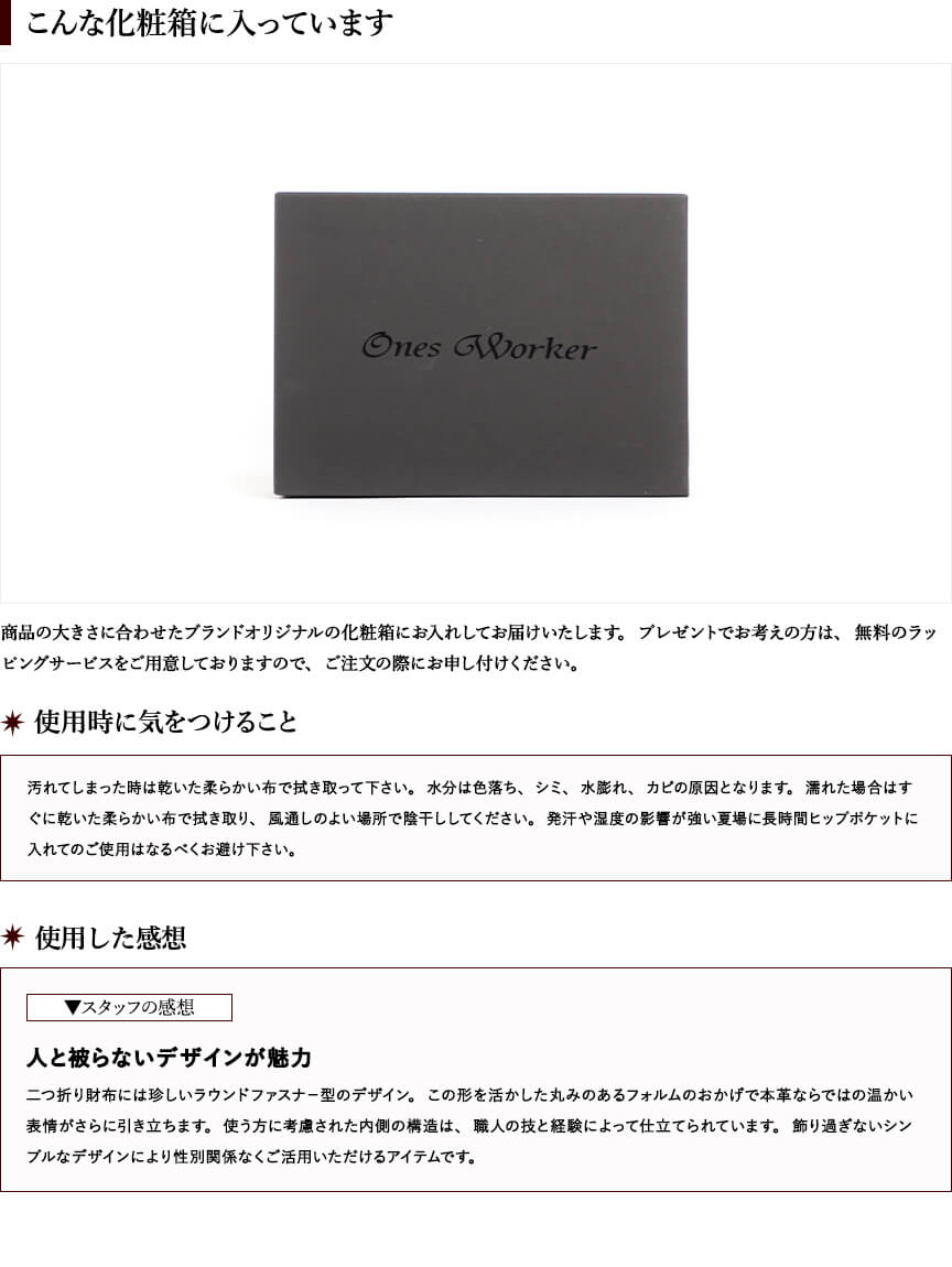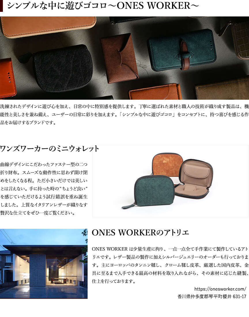 ワンズワーカー ファスナーウォレット ショートタイプ ラウンドミニ財布 ONES WORKER