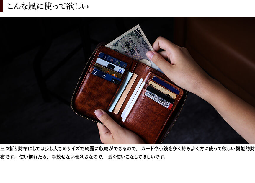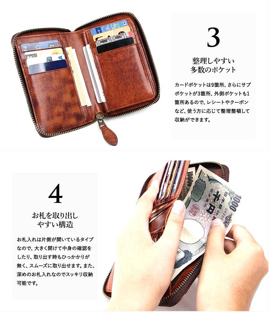 容量もよく札も入れやすくとても万能です。ただ経年変化には時間がかかりそうです。個人的には満足なのでこれから長く使っていこうと思います。