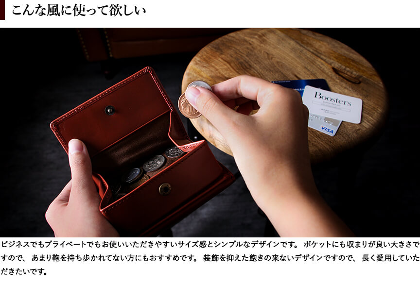 【サイズ】縦8.5cm×横10.7cm×2.4cm【重さ】約80g【素材】タンニン鞣し本革【生産国】バングラディッシュ【仕様】カード収納枚数×3コインケース×1サブポケット×4お札収納×1室