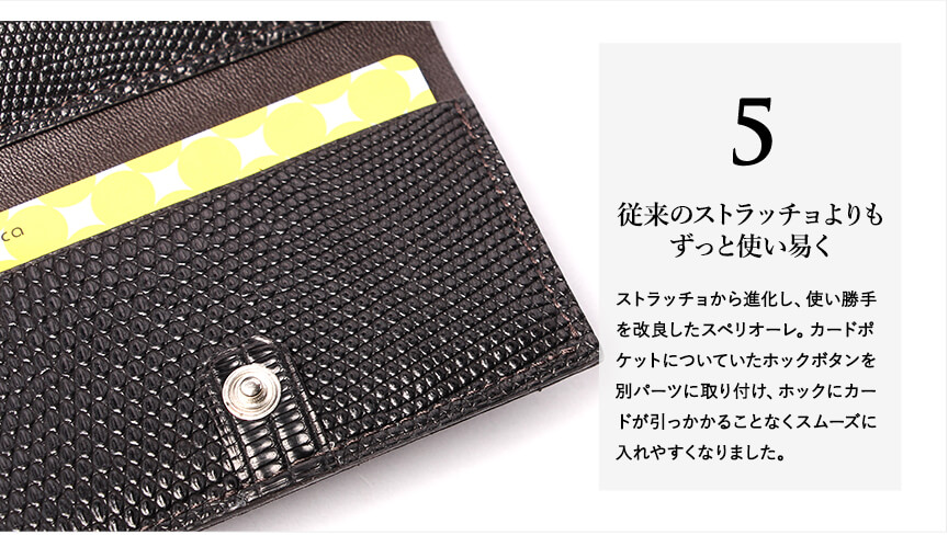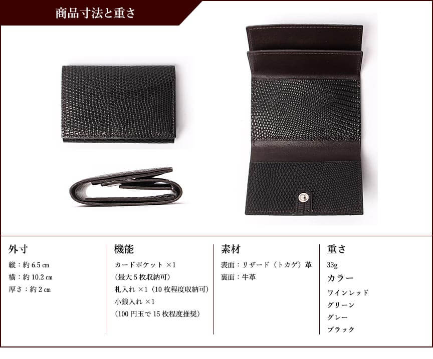 リザードのブラックを購入しました。上品な質感で大満足です。ゆっくり経年変化を楽しみたいと思います。本来小銭入れの部分によく使用するクレジットカードを入れています。