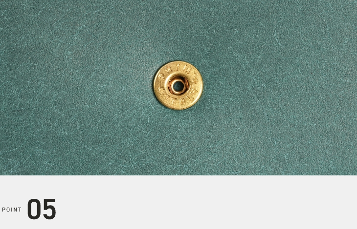 革の雰囲気を際立たせる真鍮ホック