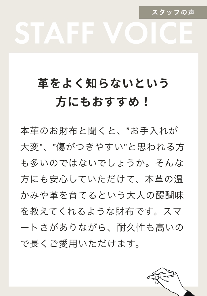 使い込むことでより魅力が増す財布に仕上がっています。