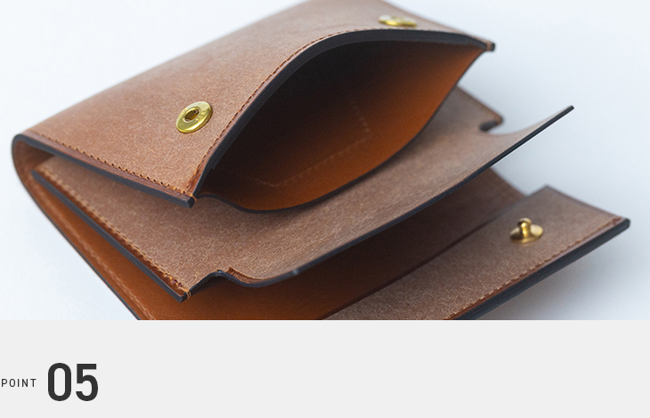 一見するとマチのない小さなコインポケットですが、柔軟に広がる設計となっており、視認性の面でも問題ございません。コイン収納が不要な場合には、カードや名刺の収納スペースとしてもお使いいただけます。