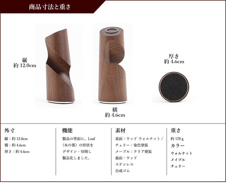 製品の背面に、Leaf(木の葉)の形状をデザイン・切削し製品化しました。