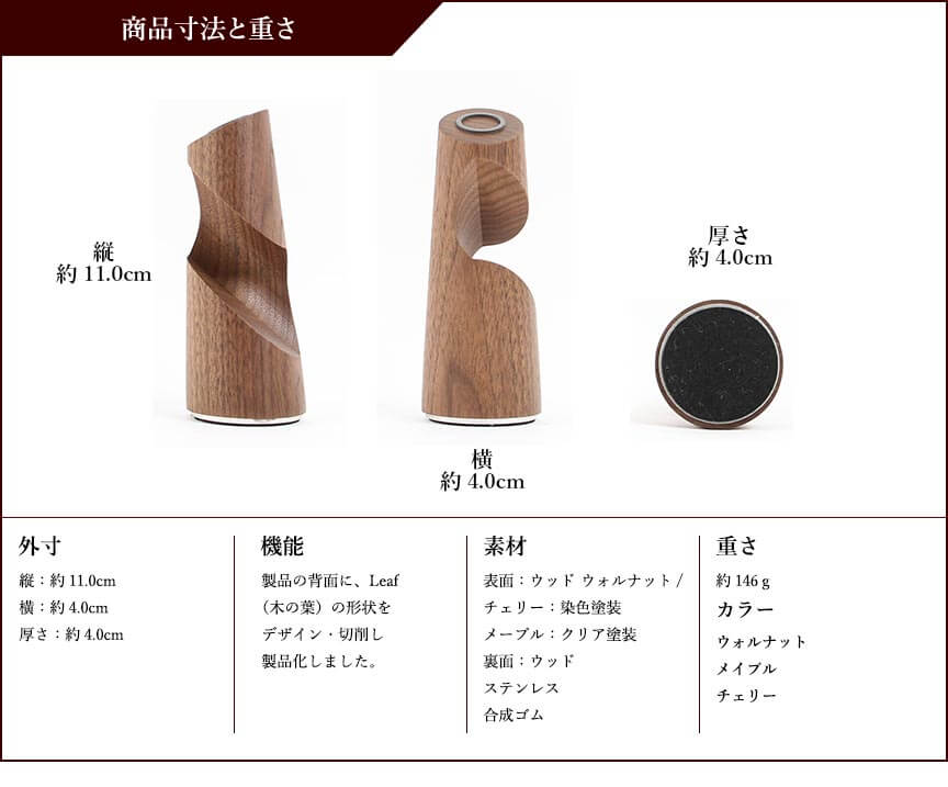 製品の背面に、Leaf(木の葉)の形状をデザイン・切削し製品化しました。